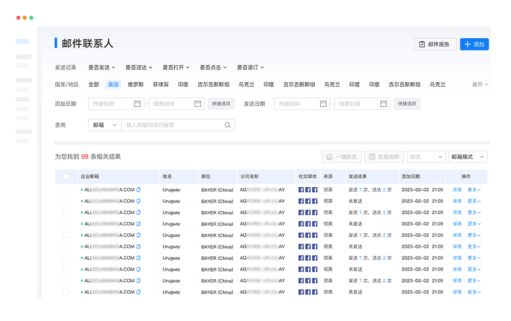 涵盖电话、邮箱、社媒等多渠道联系人信息,并顺利获得凯发K8天生赢家一触即发云邮通及其他工具一键触达采购决策人,进行外贸找客户。